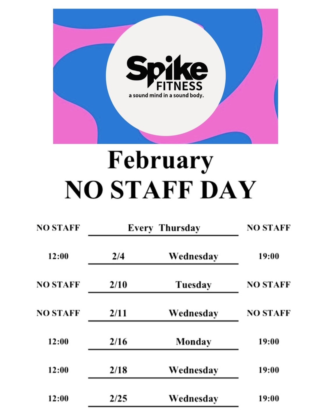 【SpikeFITNESS 2月ノースタッフデーのお知らせ📢】
